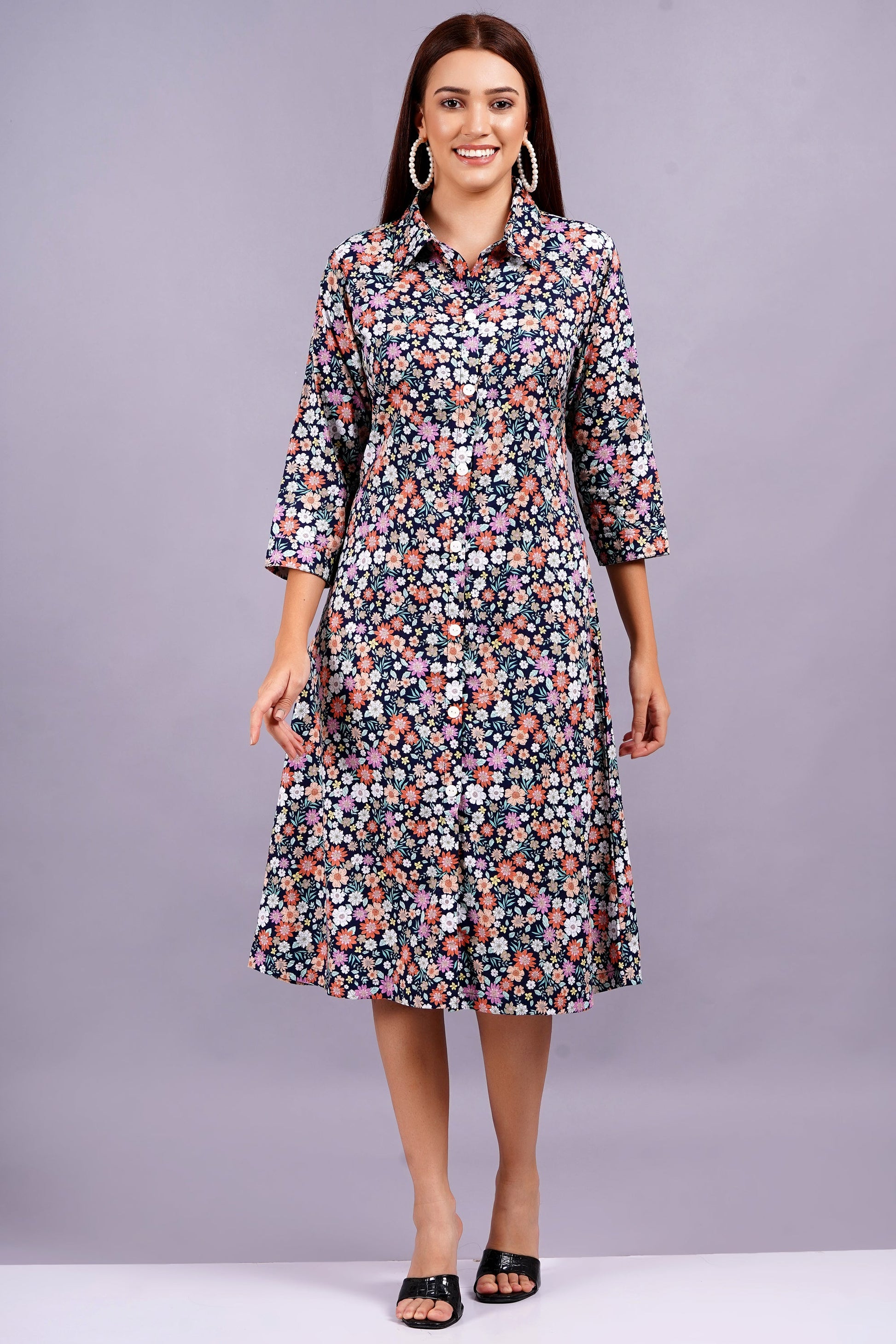 This Printed A-Line Dress is crafted with fine quality cotton flex fabric. You may choose from various size options starting from M up to 4XL.