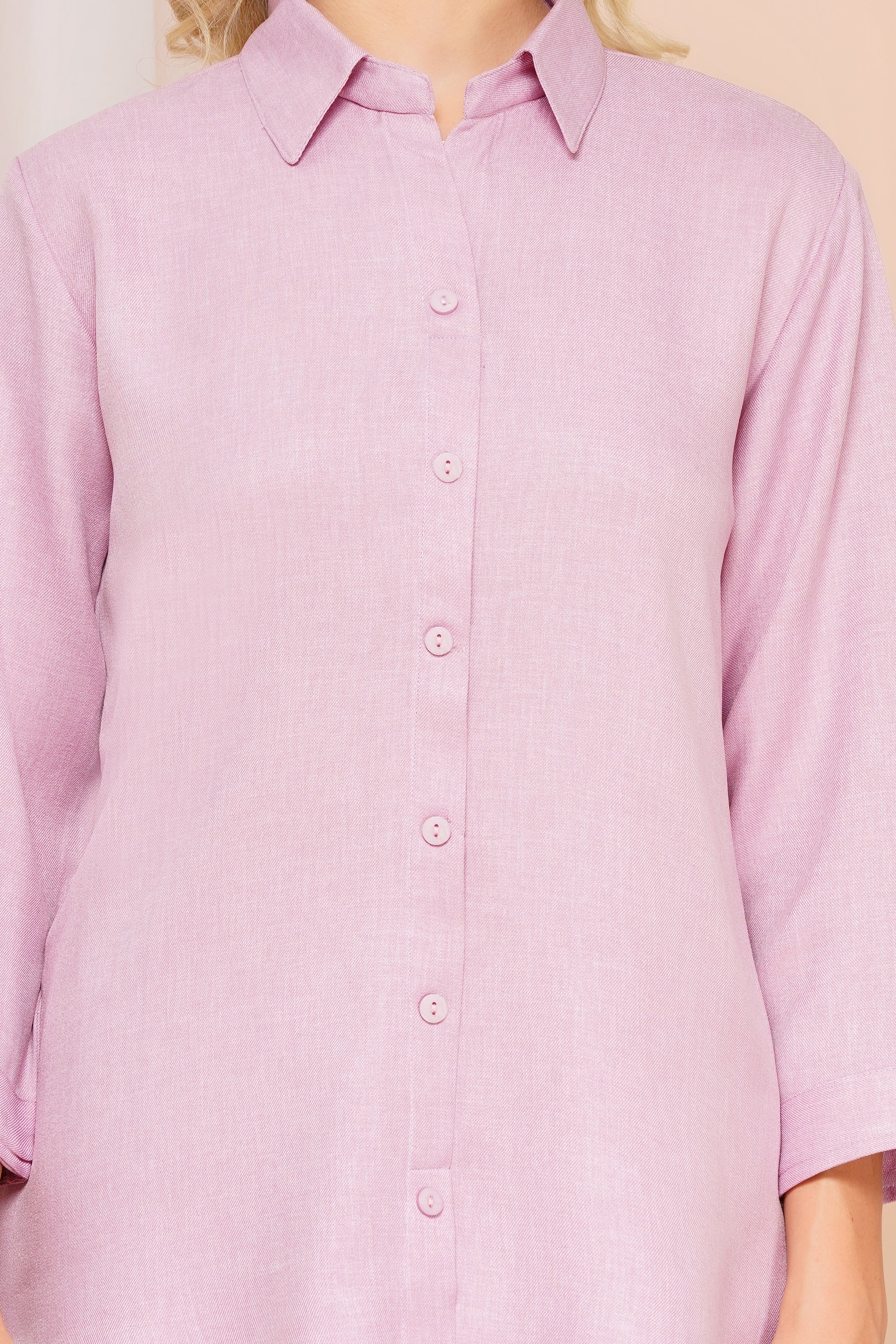 Add a touch of softness to your everyday look with this elegant lilac co-ord set. Featuring a classic collared shirt and matching straight-fit pants, this set blends minimal elegance with unmatched comfort—perfect for a polished yet relaxed vibe. The relaxed-fit button-down shirt pairs perfectly with tailored straight-leg pants, creating a sophisticated yet casual look.