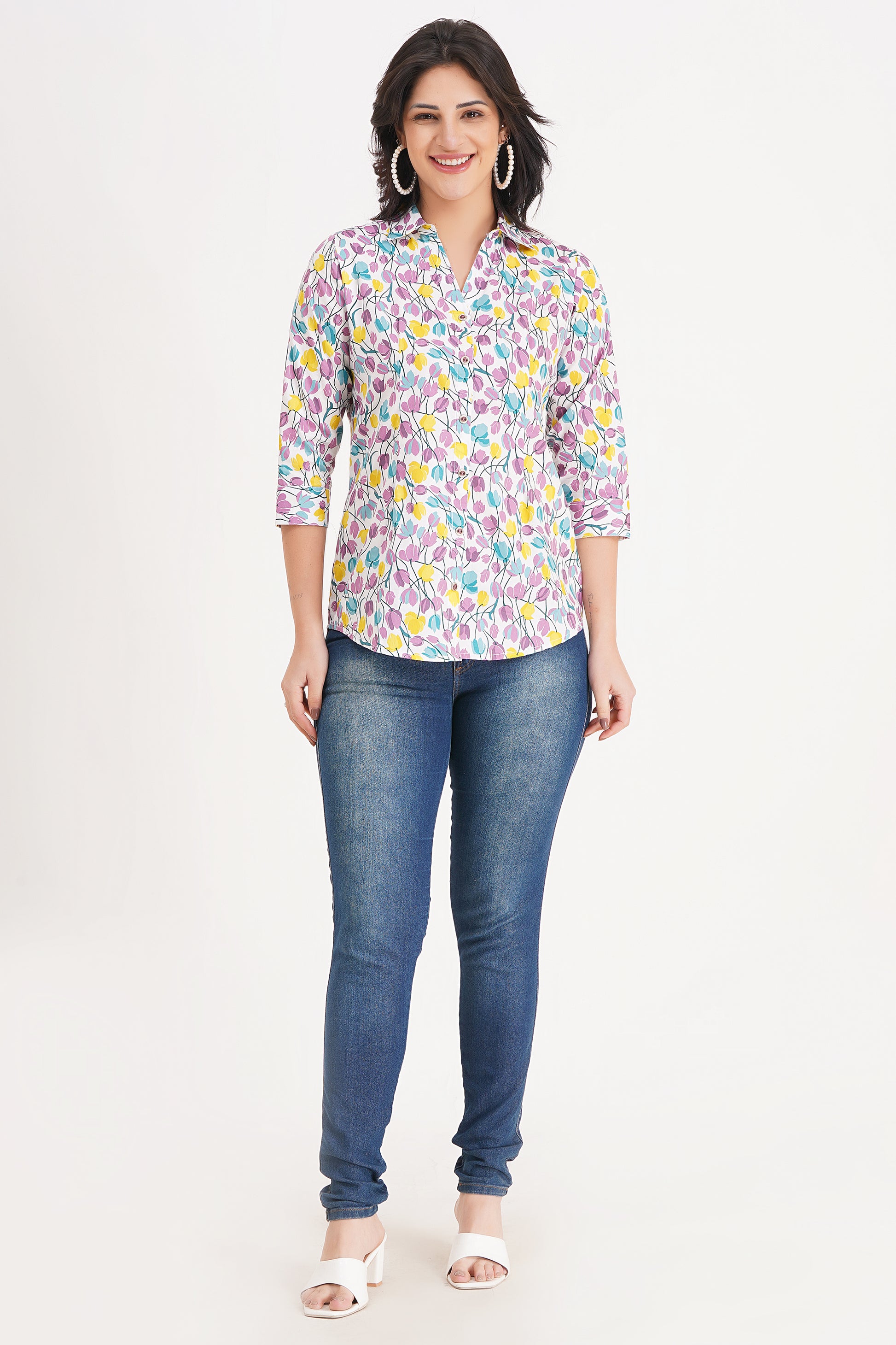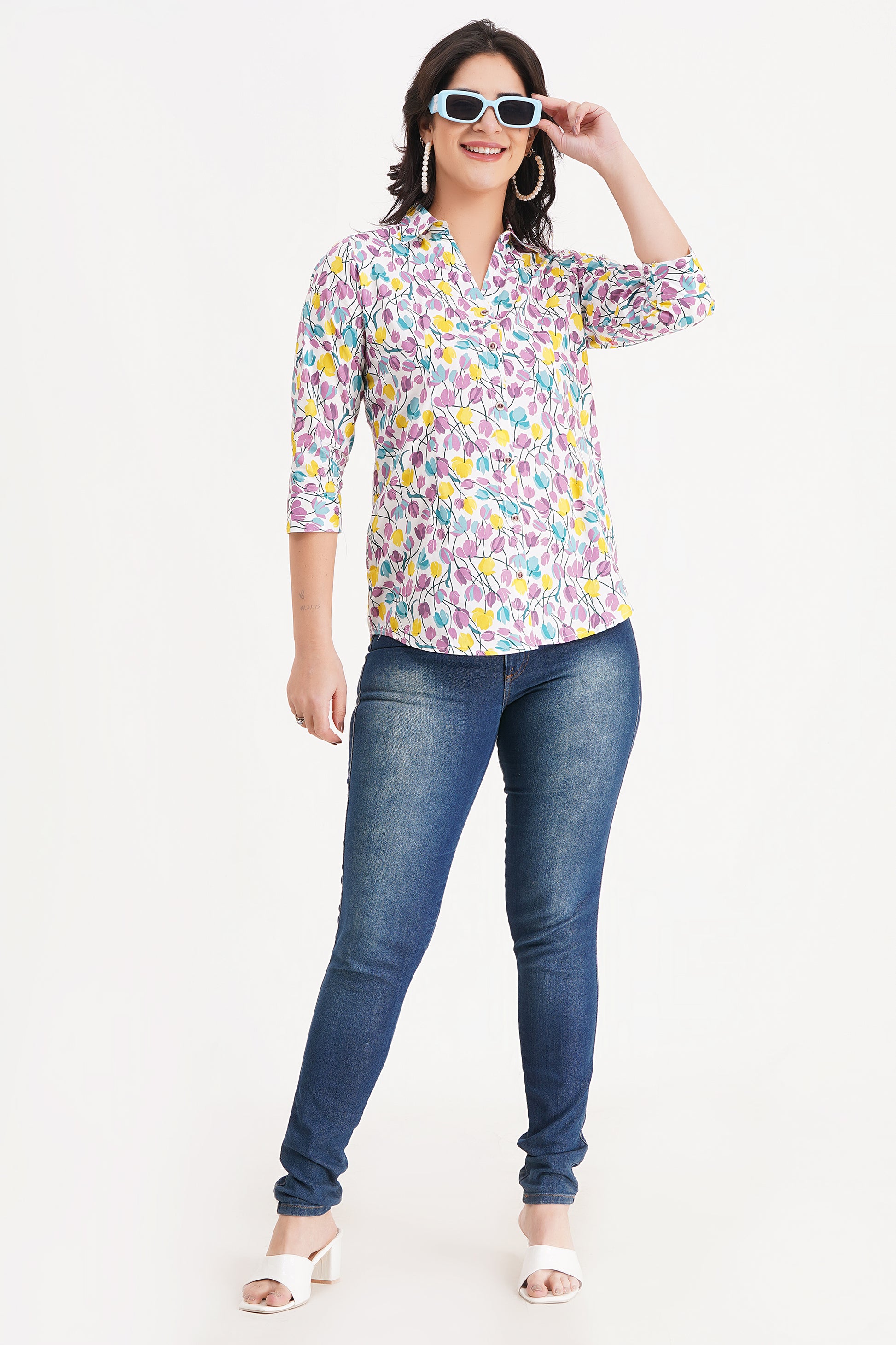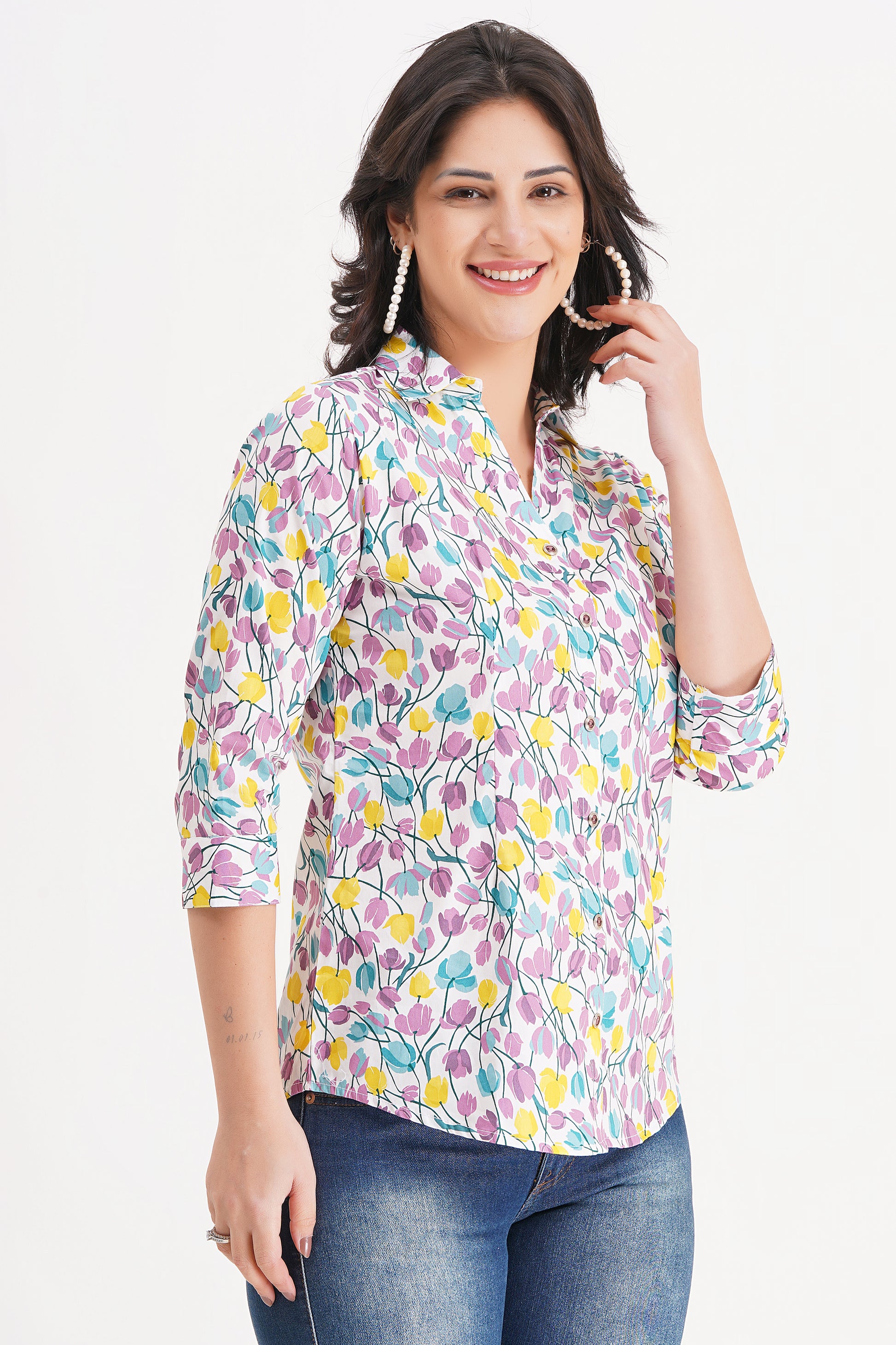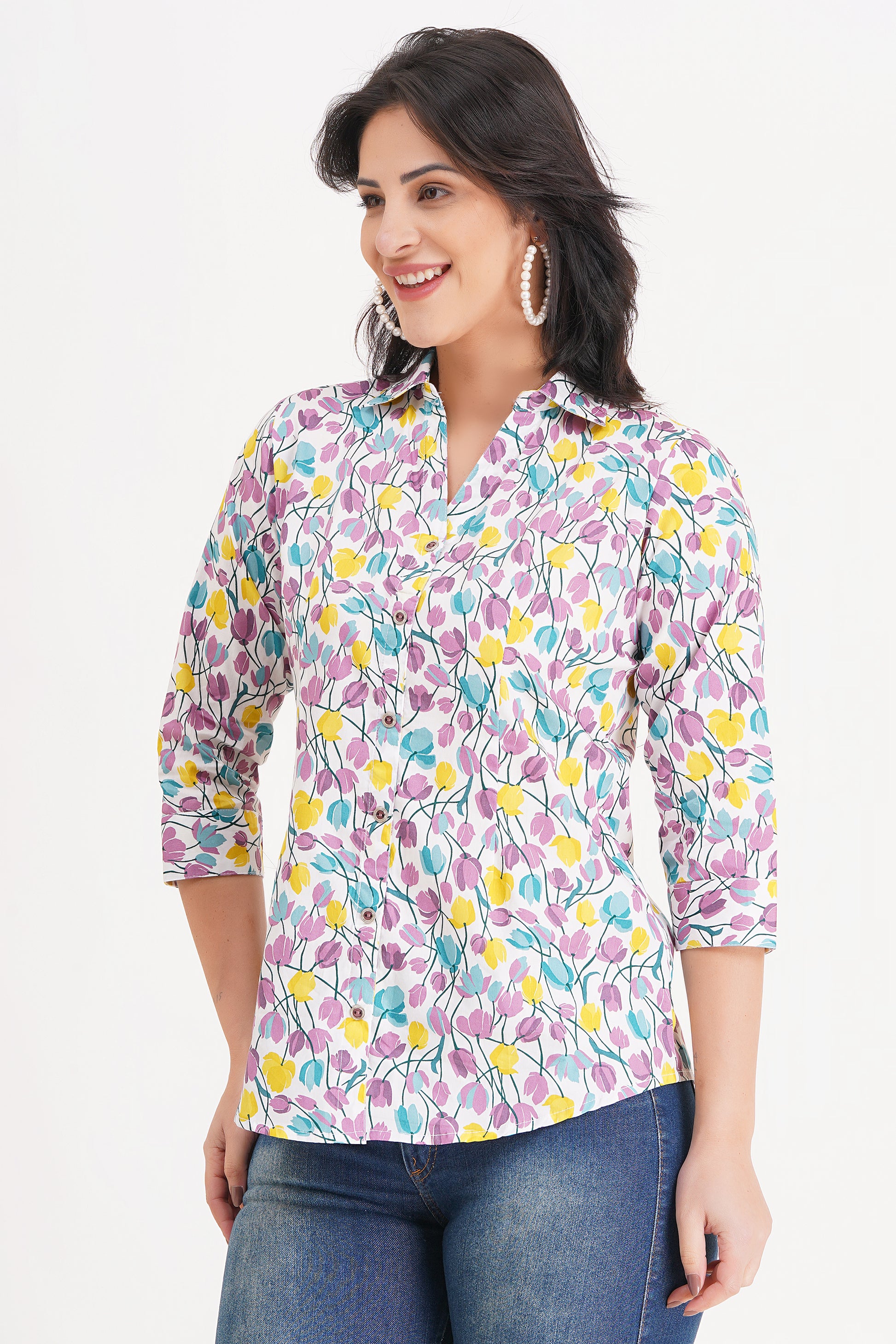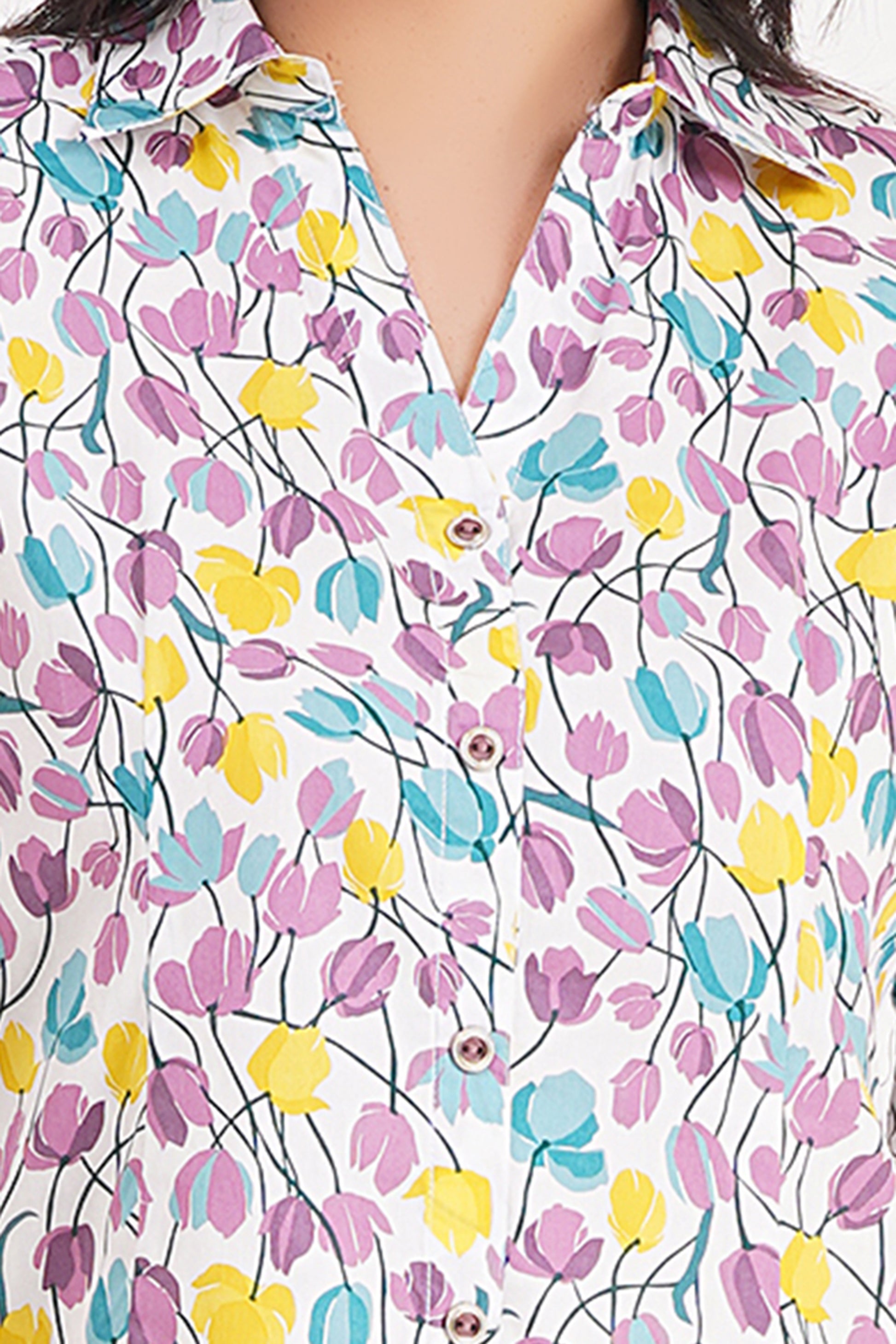 Brighten up your wardrobe with the Bloom Charm Floral Top by Avyarna. Adorned with a delicate multicolor floral print, this top brings a fresh and feminine vibe to your everyday style. Made from breathable, soft fabric, it ensures maximum comfort while keeping you effortlessly stylish. Perfect for casual outings, brunch dates, or even workwear—this versatile piece is a must-have!