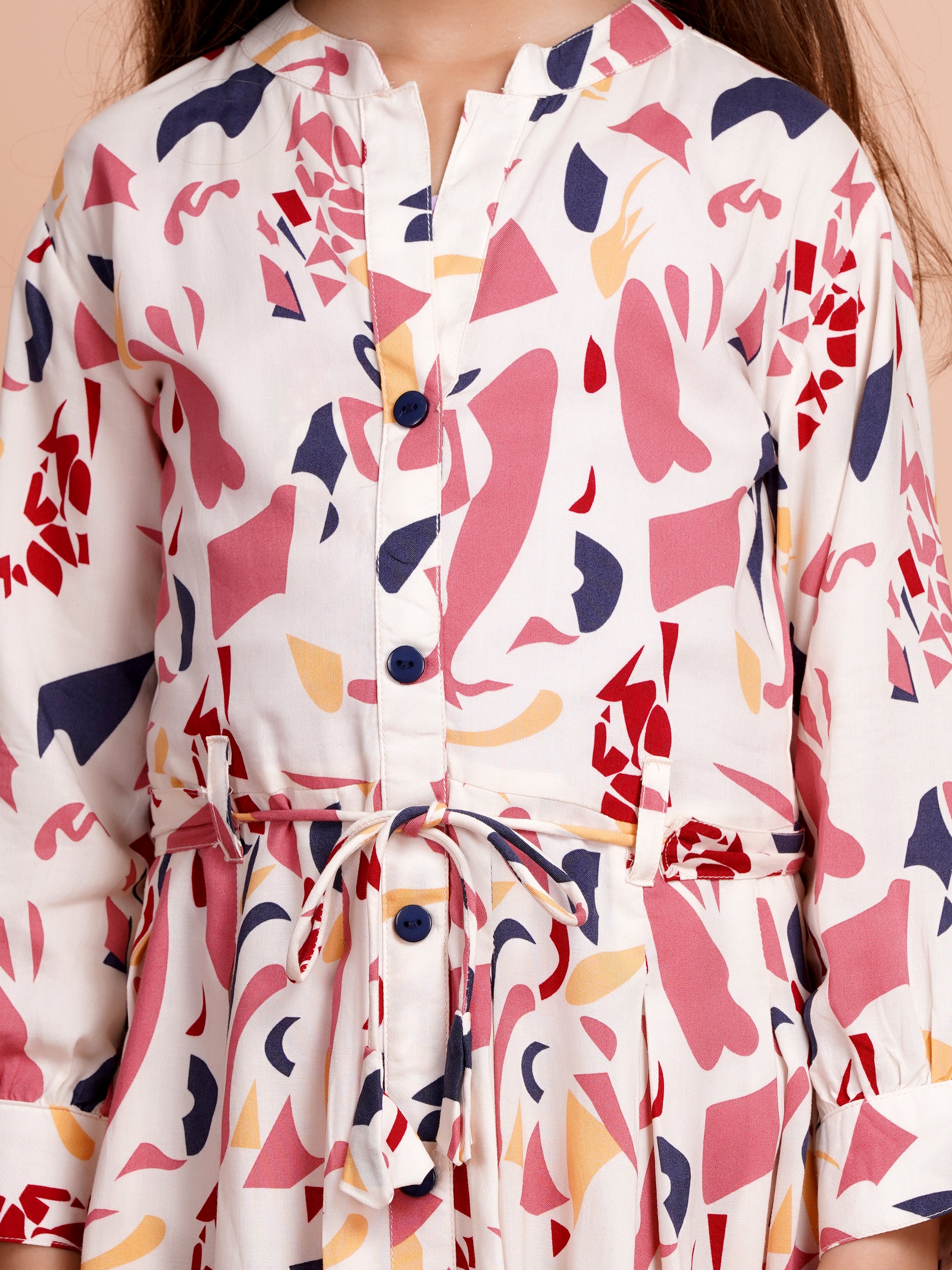 Our Printed Dress combines vibrant style with comfort, crafted from soft, breathable cotton to keep your child comfortable all day. Featuring a lively multicolored leaf pattern, this dress is perfect for playdates, birthdays, and casual outings. The adjustable waist tie ensures a personalized fit, while the button-down front adds a timeless detail. Designed for both ease and elegance, it brings a cheerful splash of color to your child’s wardrobe.