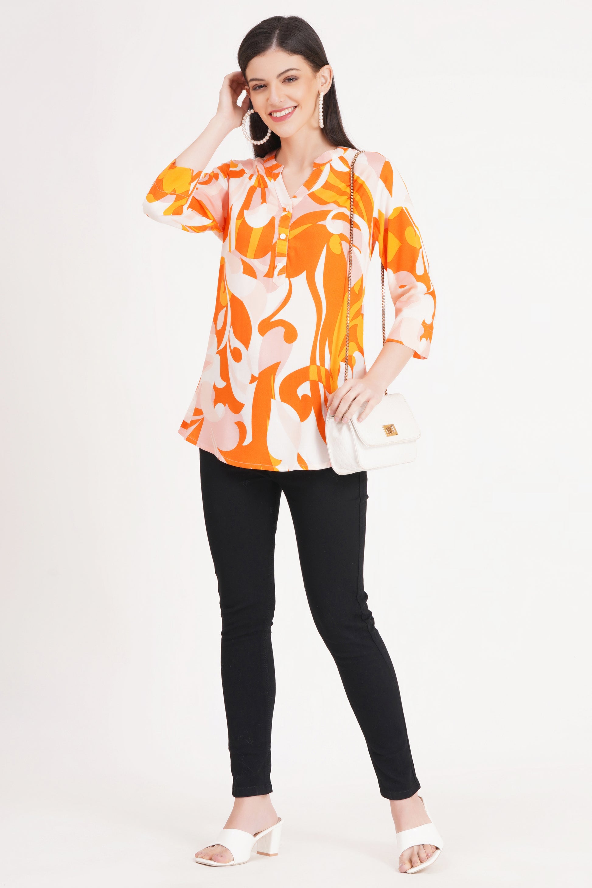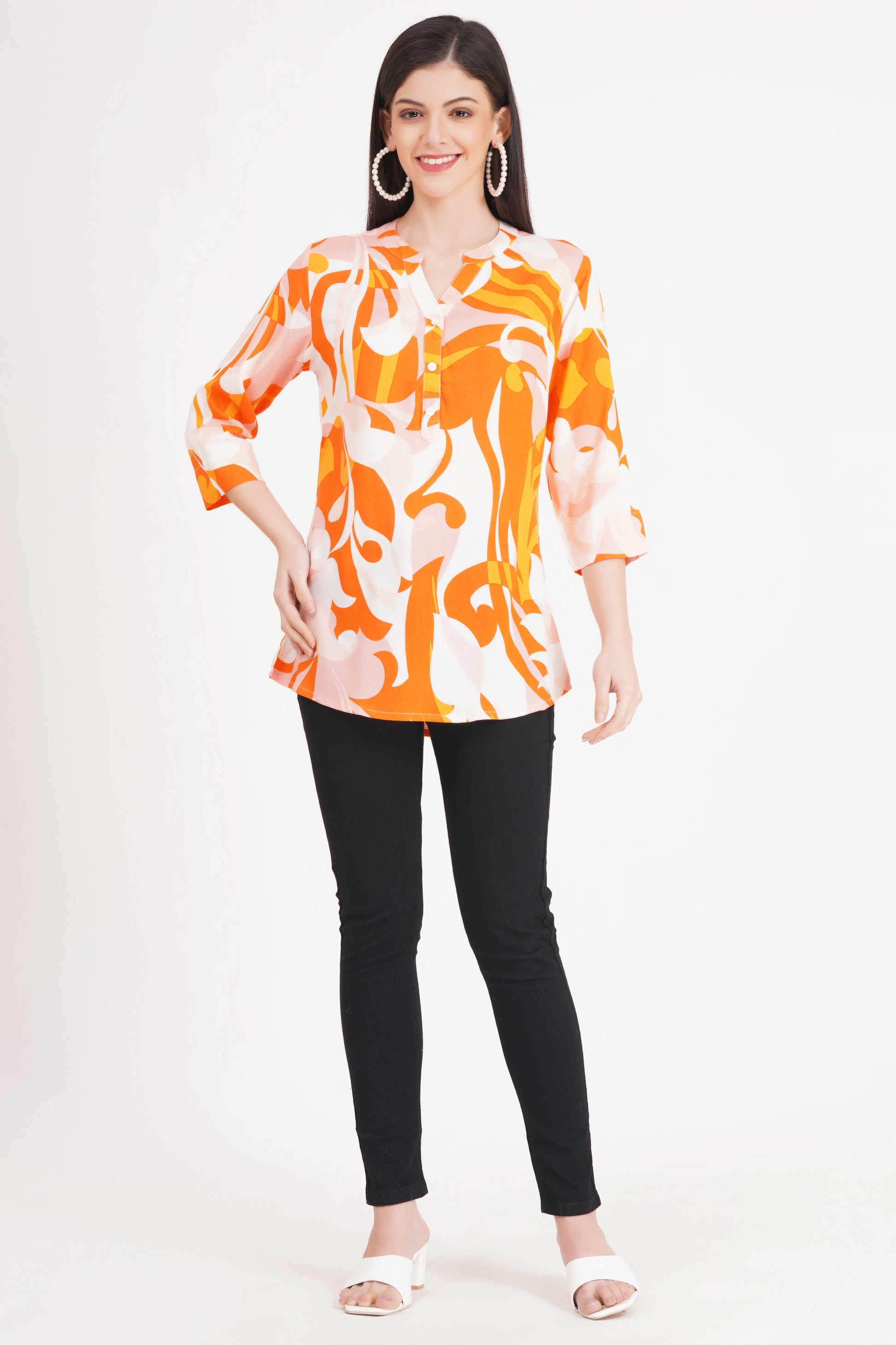 Step into effortless elegance with the Orange Bliss Printed Top by Avyarna. Designed for modern comfort and style, this lightweight tunic features a bold abstract print in vibrant orange hues, perfect for casual outings or festive gatherings. Crafted from breathable fabric, it ensures all-day comfort while keeping you effortlessly chic. Pair it with jeans, leggings, or palazzos for a stunning everyday look!