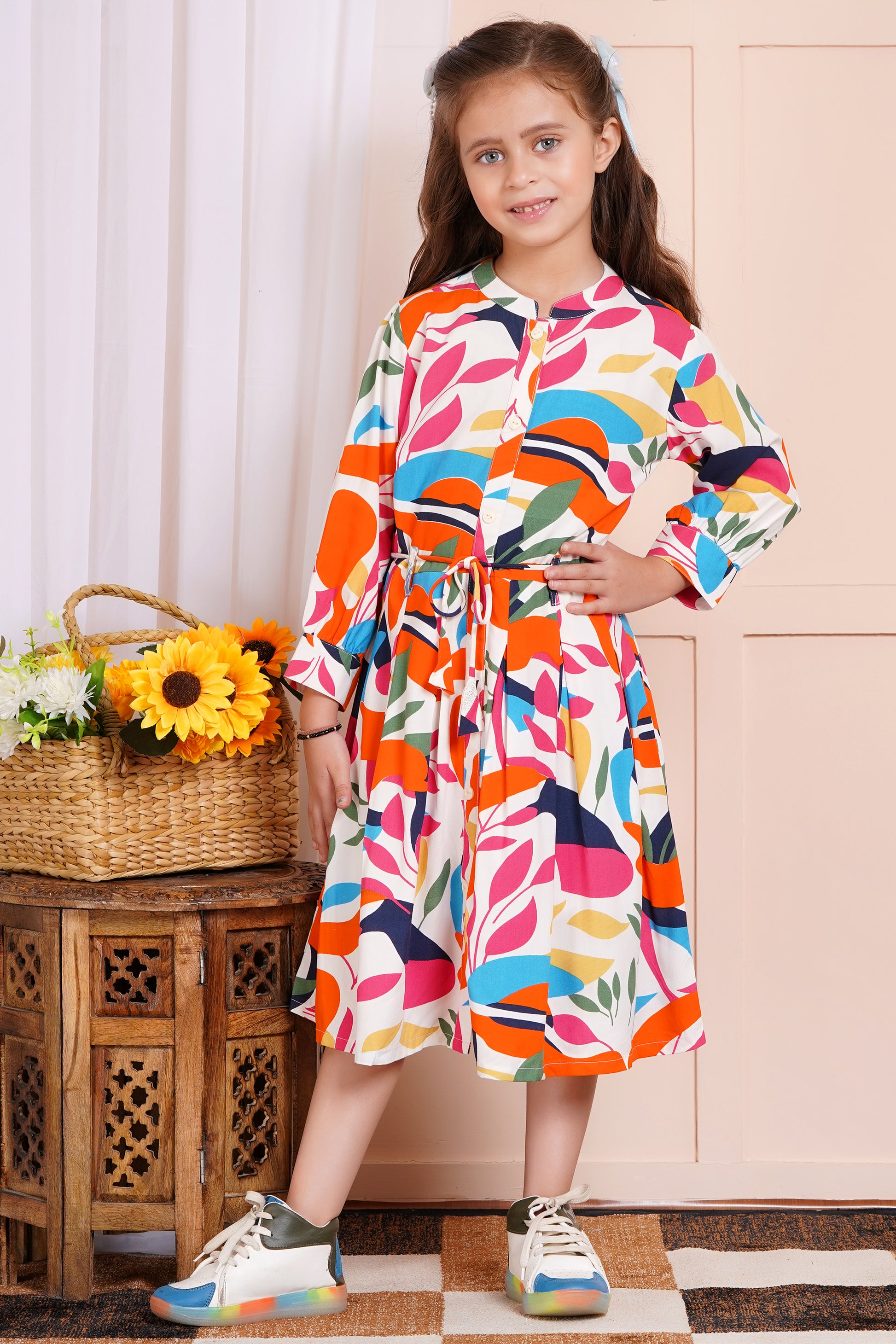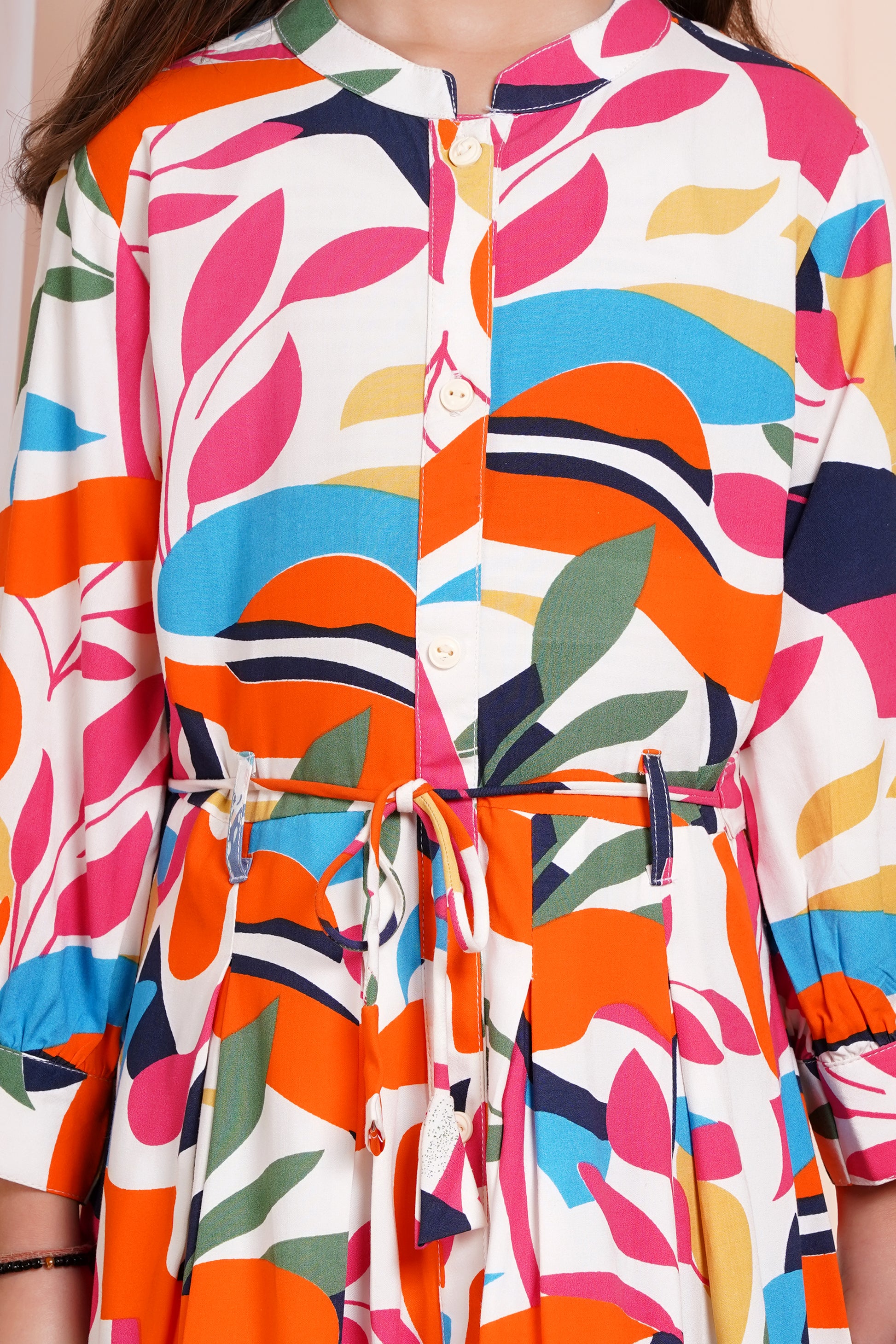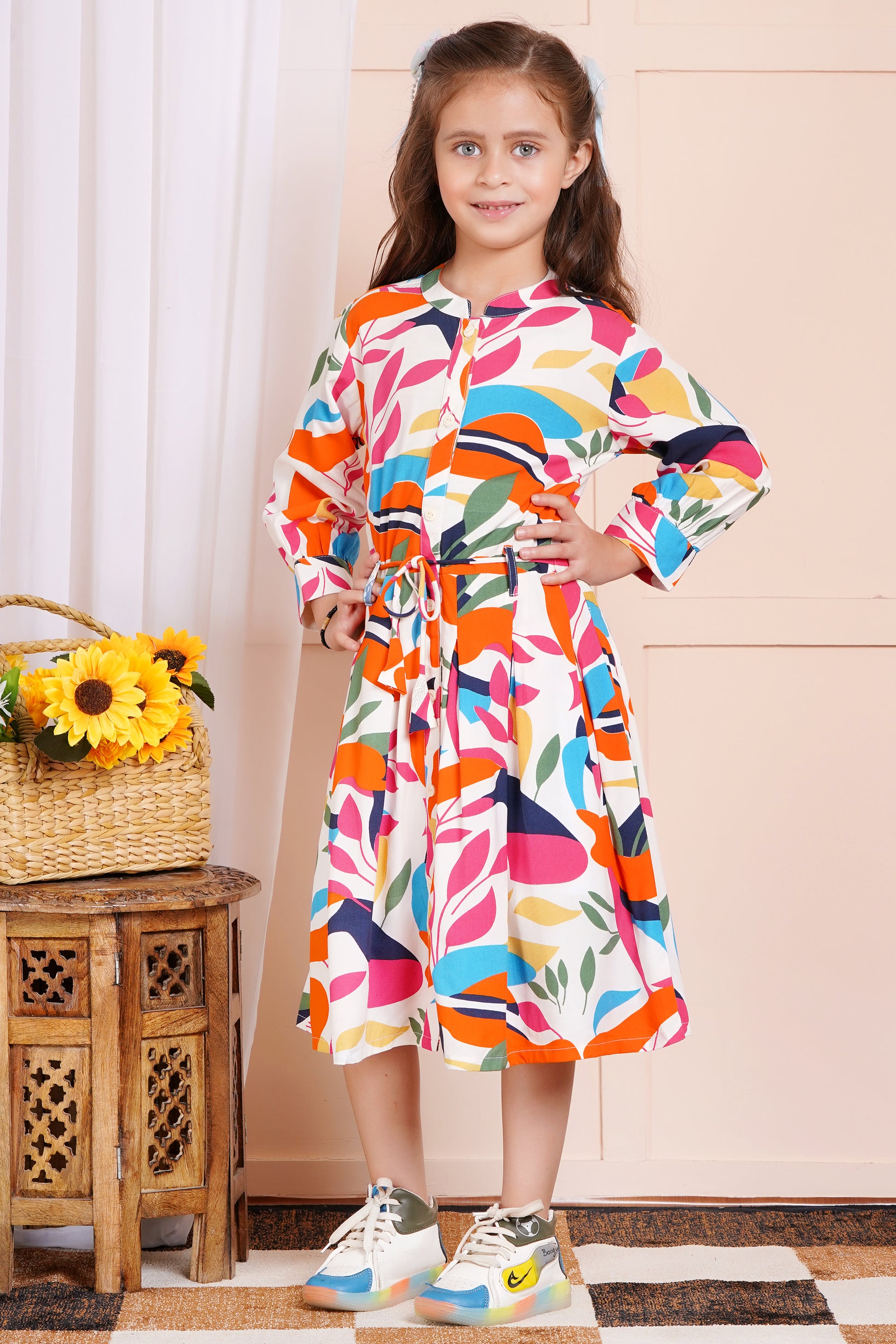 Our Color Splash Printed Dress combines vibrant style with comfort, crafted from soft, breathable cotton to keep your child comfortable all day. Featuring a lively multicolored leaf pattern, this dress is perfect for playdates, birthdays, and casual outings. The adjustable waist tie ensures a personalized fit, while the button-down front adds a timeless detail. Designed for both ease and elegance, it brings a cheerful splash of color to your child’s wardrobe.