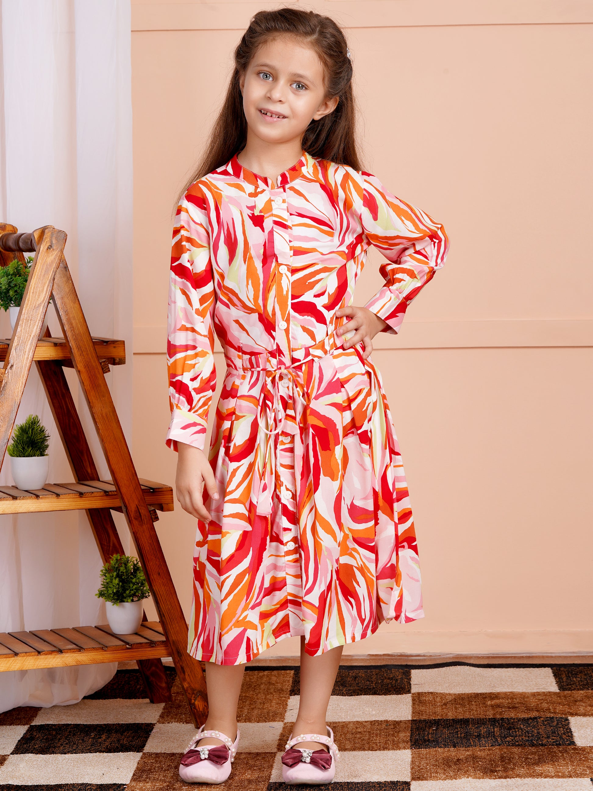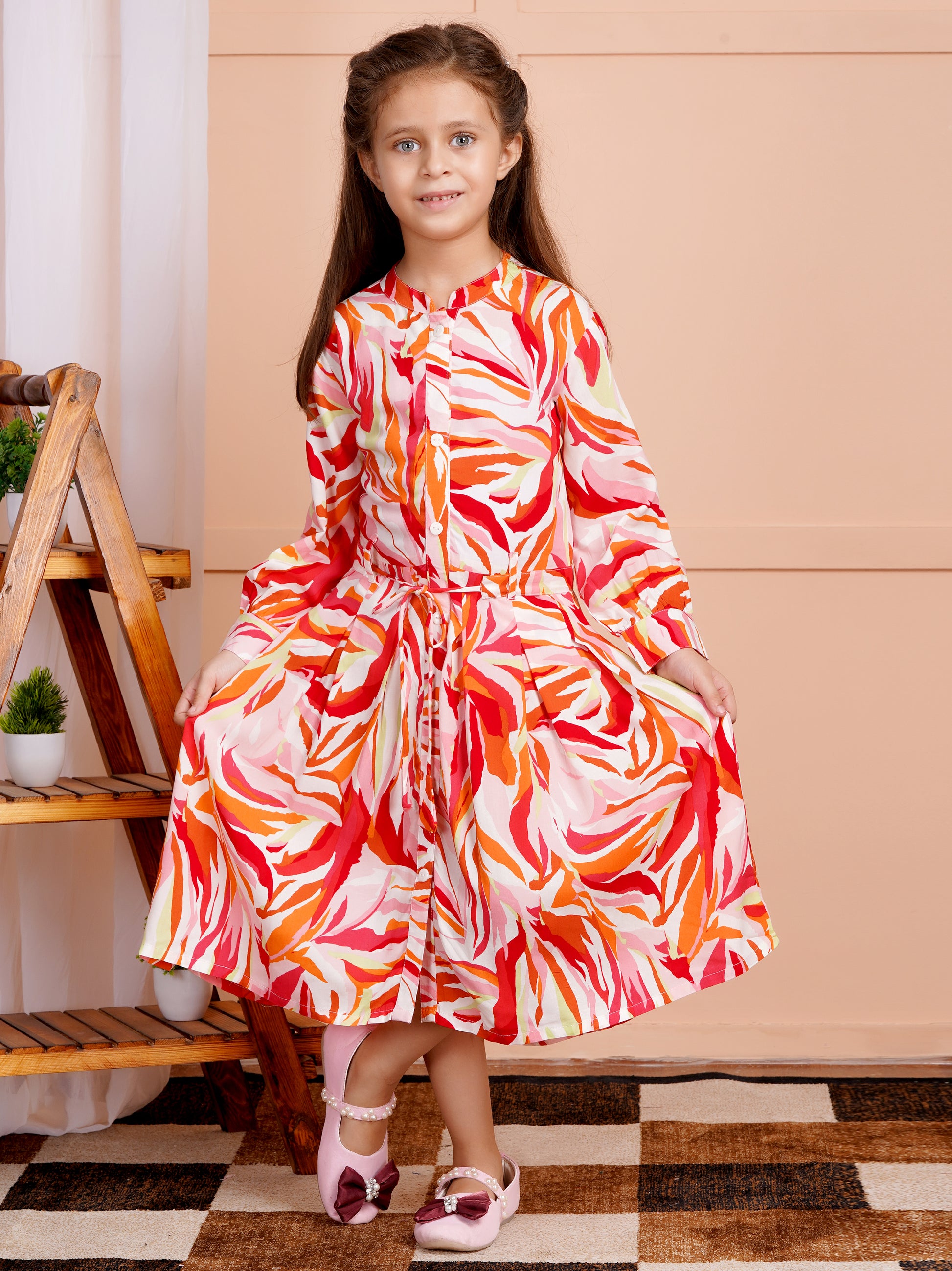 Our Printed Dress combines vibrant style with comfort, crafted from soft, breathable cotton to keep your child comfortable all day. Featuring a lively multicolored leaf pattern, this dress is perfect for playdates, birthdays, and casual outings. The adjustable waist tie ensures a personalized fit, while the button-down front adds a timeless detail. Designed for both ease and elegance, it brings a cheerful splash of color to your child’s wardrobe.